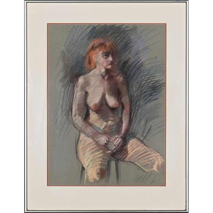 INDISTINCTLY SIGNED, SEATED FEMALE NUDE